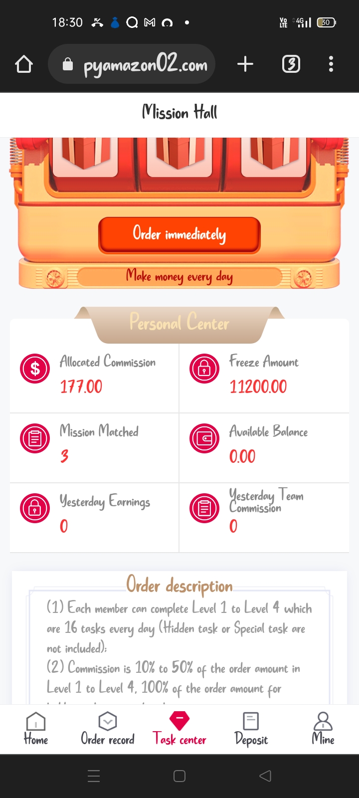 Amazon mission hall mujhe Facebook se ek link aaya tha ki ismein apna task pura karoge to appko arning hogi aur Maine usmein paise Dale tab ek do bar vidroh Ho Gaye FIR dobara WhatsApp per message aaya ki aur apna task pura karo aur kamai hogi tab Maine usmein dobara se paise Dale tab usmein Mera amount fridge kar Diya aur main ismein paise dalta raha hun na bola aur task pura karo aur task pura karo nahin hua hai