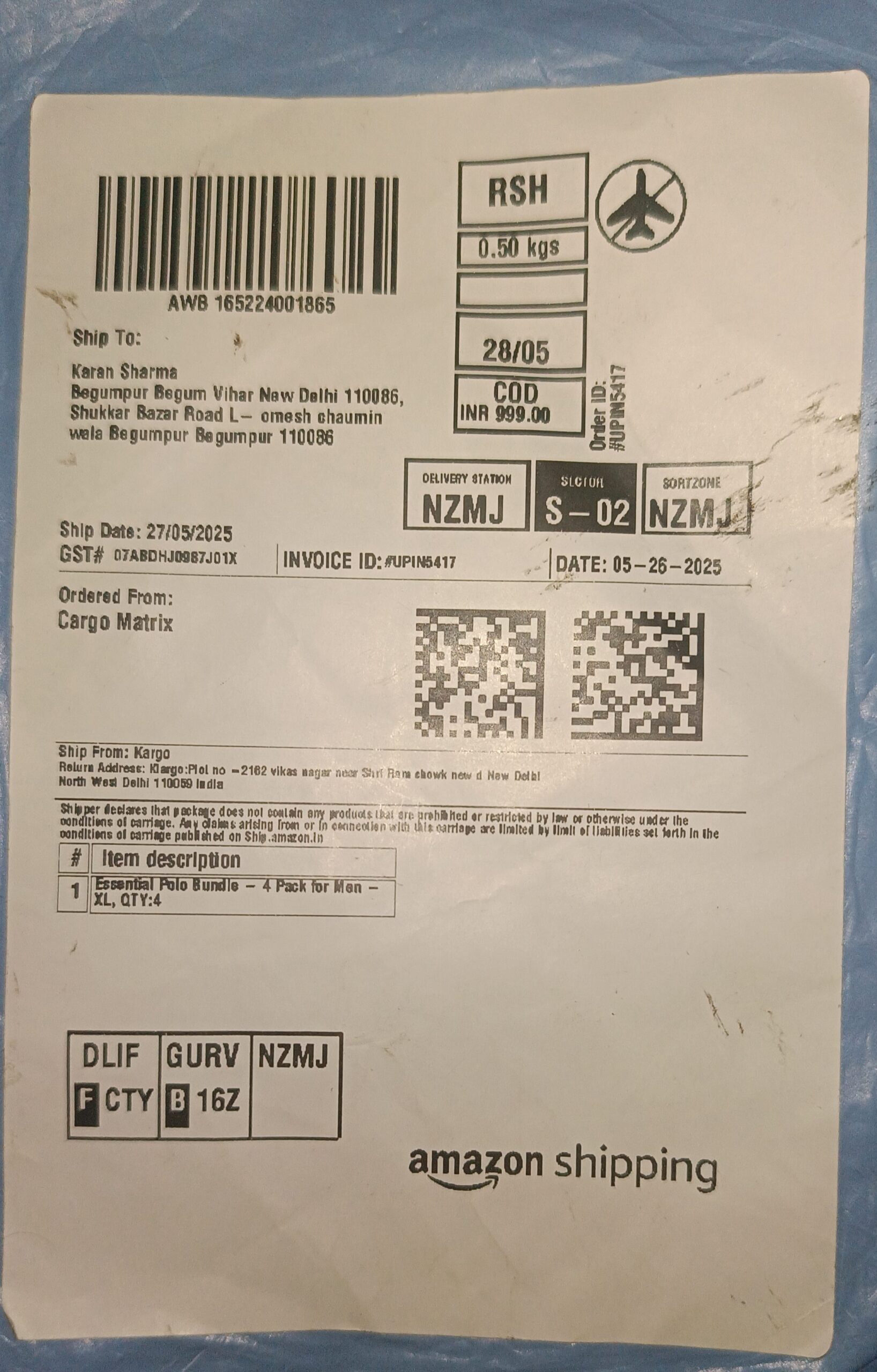 मैने इंस्टाग्राम से ऑर्डर बुक किया thread_trends5246 इस आईडी से 4टीशर्ट लेकिन डिलीवर हुई 2पेंट जो किसी काम की नहीं ओर पेमेंट करदी थी paytm 999₹/- आप कुछ कीजिए मेरी आपसे विनती है मैं आपको सारे सबूत के तौर पर फोटो देता हूं।