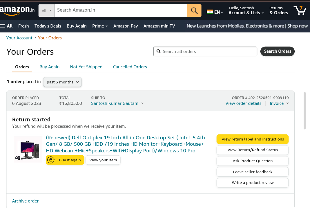 मैंने अमेजॉन से Dell all in one PC (Renewd) ऑर्डर किया था जो की दिनाक 06 Aug 2023 कों किया था।उसकी delivery date 11 Aug थी। लेकिन मुझे Dell की जगह HP का मॉनिटर दिया