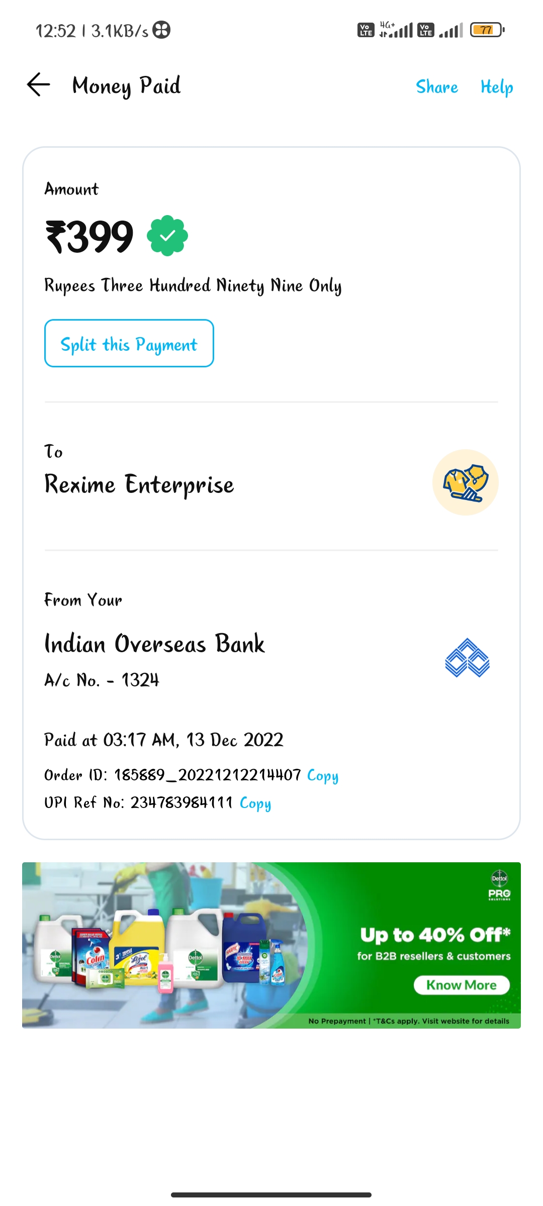 13/12/2022 ರಂದು ನಾನು ಜಾಕೆಟ್ ಆರ್ಡರ್ ಮಾಡಿದ್ದೂ ಹಣ ಆನ್ಲೈನ್ ನಲ್ಲಿ ಪೇಮೆಂಟ್ ಮಾಡಿಸಿಕೊಂಡು ಜಾಕೆಟ್ ಬಂದಿಲ್ಲ ಮತ್ತು ಯಾವುದೇ ಪ್ರತಿಕ್ರಿಯೆ ಬಂದಿರುವುದಿಲ್ಲ.