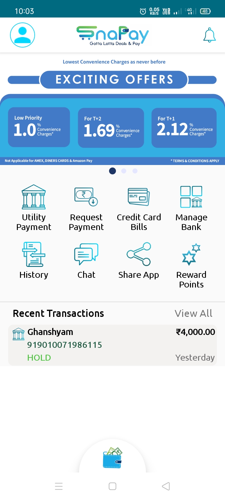 My money 4000Rs hold