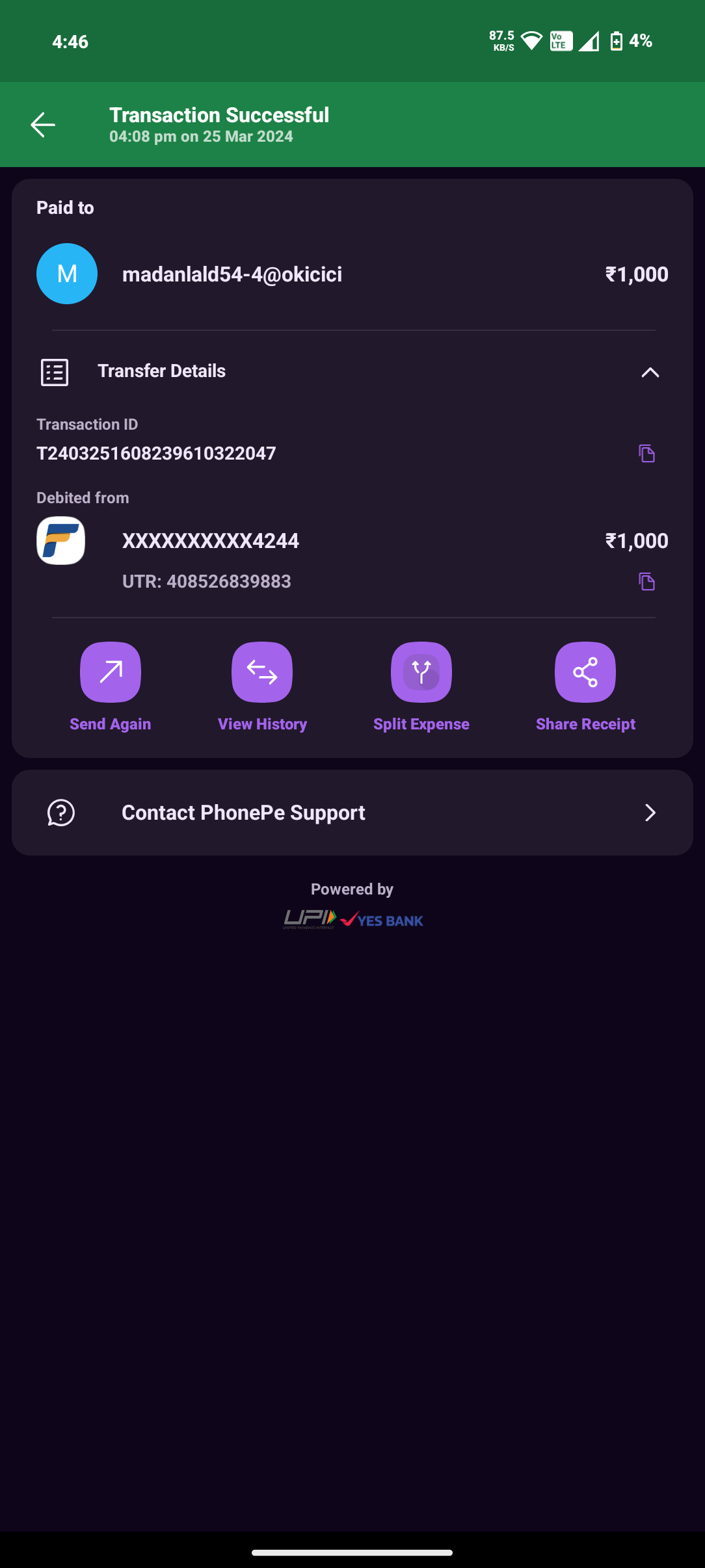 24..03..24 deposit 1000rs to my 1xbet account amount is debited form my bank account but still not deposit to my 1xbet account