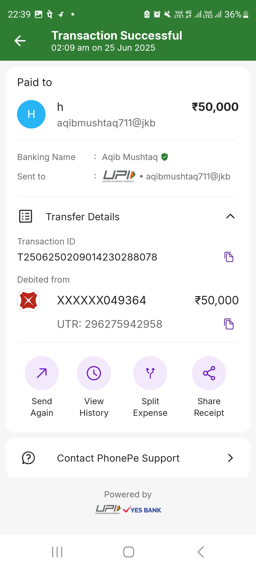 I make a 2 depoit 1st depoit 50000 on June 25 2025
