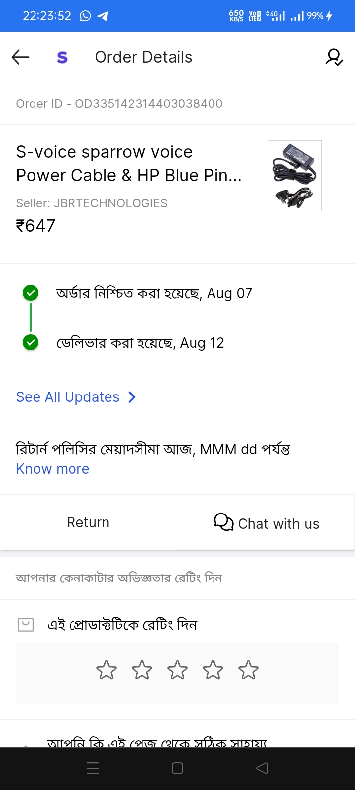 I have ordered laptop charger and an iron from shopsy app but the product not delivered on the delivery date.i got no phn call or sms from shipping delivery agent .today is 15 days but no email or call from customer care service.they are telling wait for 48 hours and issue showing resolved but my issue is not resolved.i didn’t get any two of these products