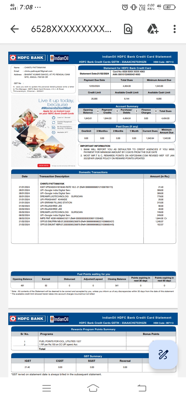 My credit card bill issue 779 and 749 debit