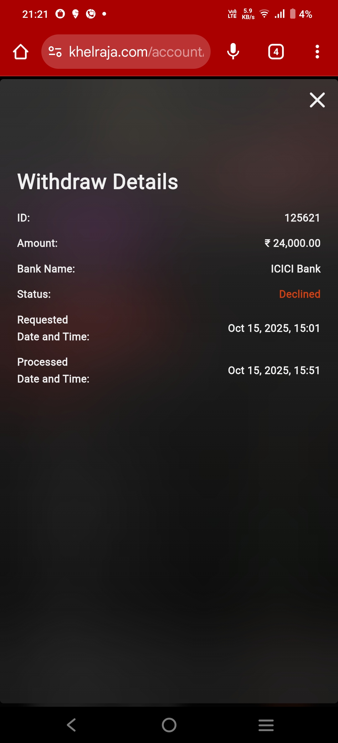I won while playing rs 24800 but they declined my withdrawal and eat all money and zero my account