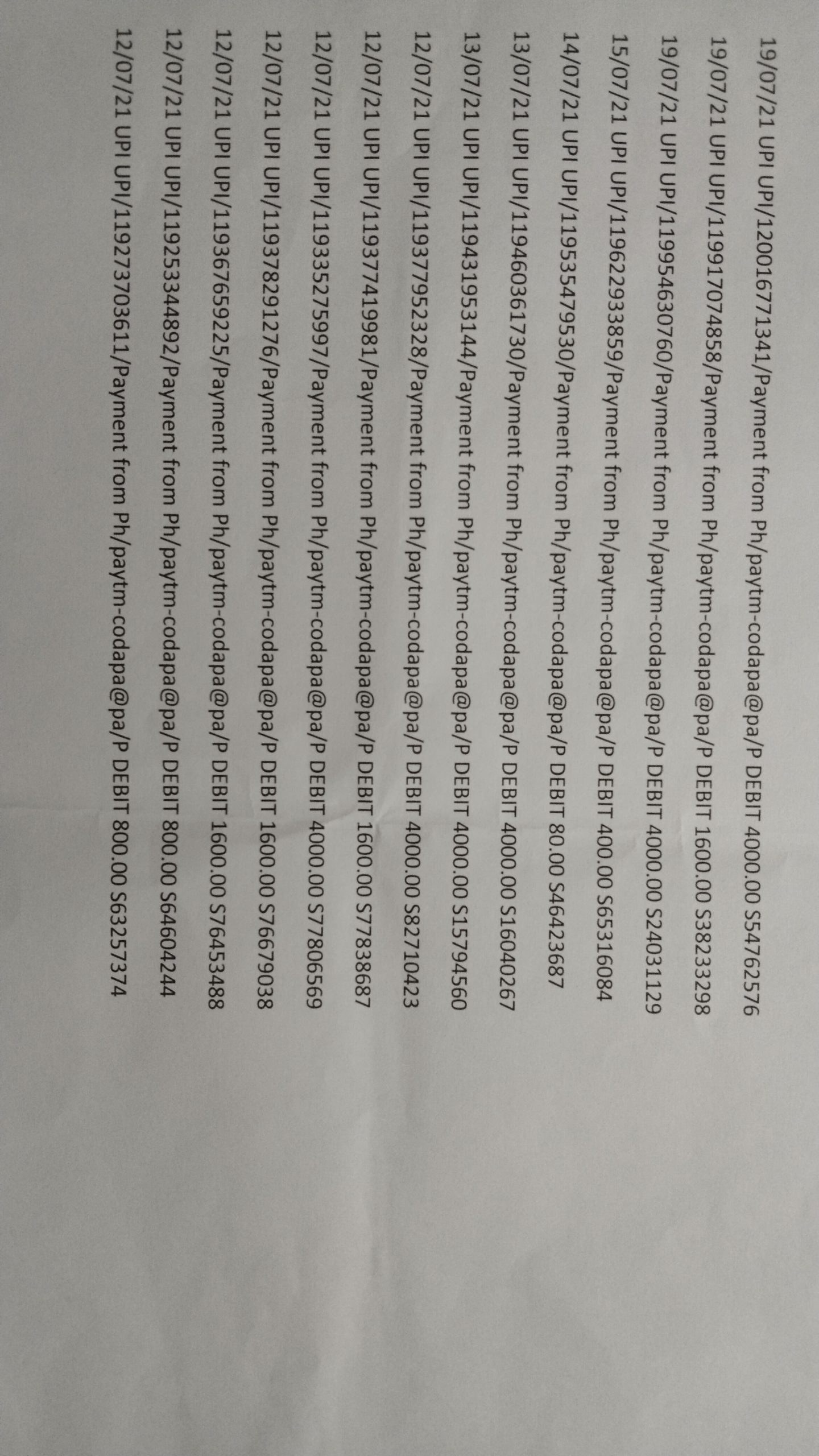 On 11/07/2021 Rs.800/- was debited to Coda Payments through Phone pay without my knowledge and they continued to do so till 19/07/2021 total amount debited is 32,480/- it’s a fraud as this all happened without my knowledge and there was not a single message from bank of money being debited.