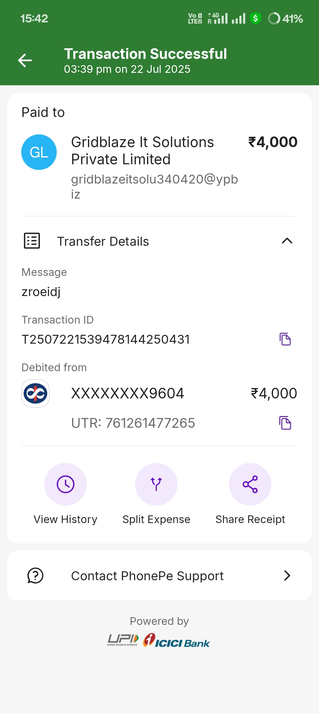 Sir, I deposited 4000 rupees today on 22.7.25 at around 3:30 but the money has not arrived yet nor am I getting any help from the support department
