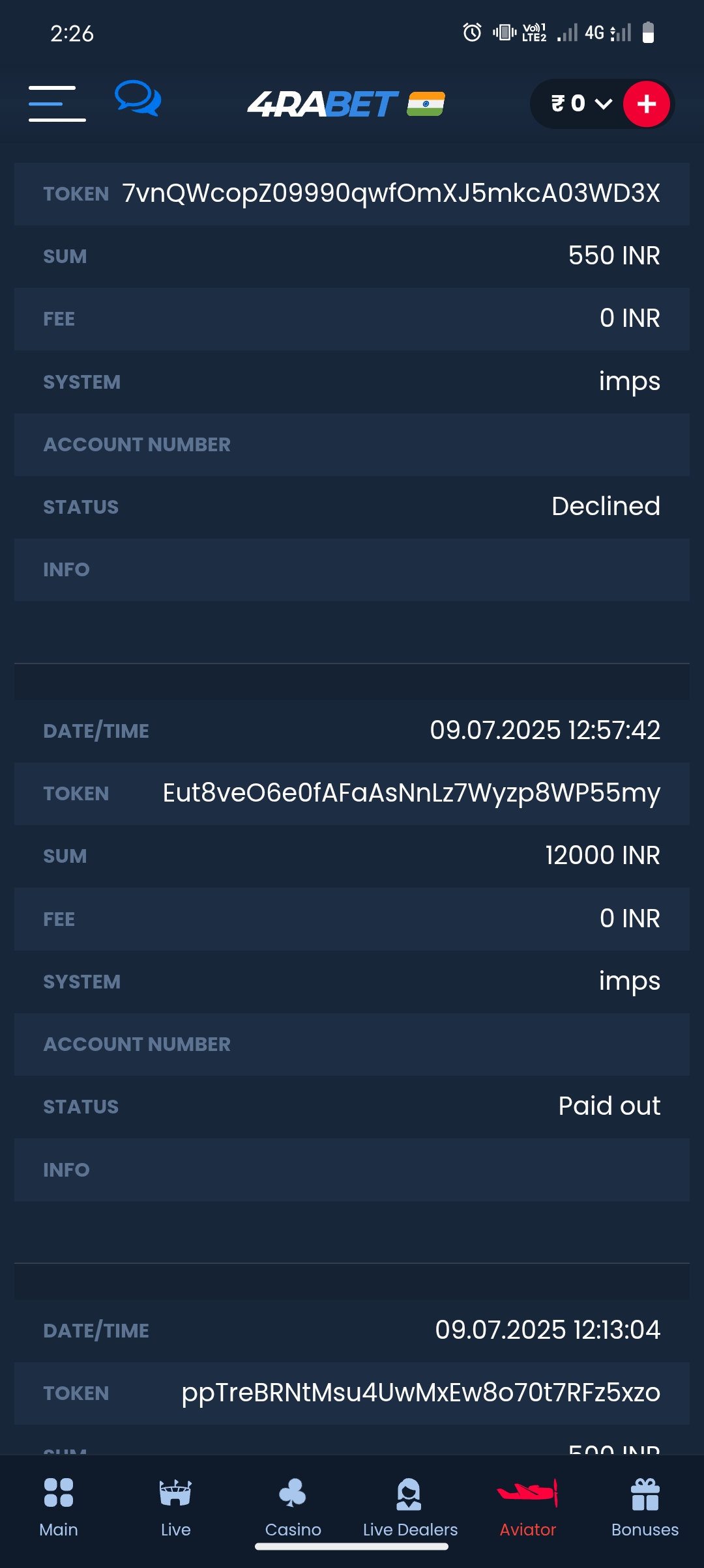On 9 july i deposited 5000 inr to 4rabet I win in aviator like 13000 after That I withdraw 500 Rs then it comes to my account.after that i forgot to logout my account and in few minutes 2 transactions automatically transferred to any account 1 transaction of 796 credited to my account but 12000 is not credited in my bank account.i reach to customer helpline they tell me wait for 48 hours it is Waiting period after 48 hours completed I repeat say withdrawal issue then they saying that your money is transferred into another account and you have to worry about it they are doing fraud with. Us