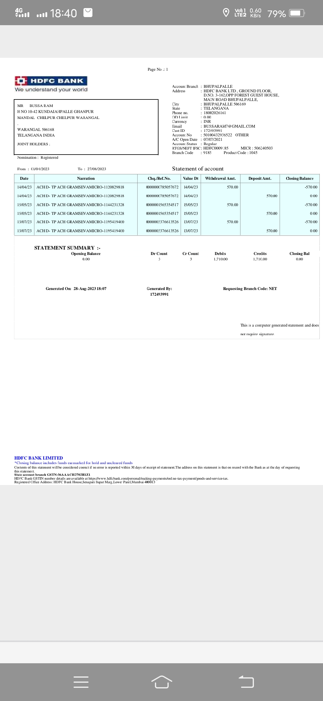 My name is bussa ram,in my hdfc savings account 570rs amount auto debit from ach ts gramsevakmicro. So I want to refund my money back ,even i didn’t take any loans ,so please refund my money back