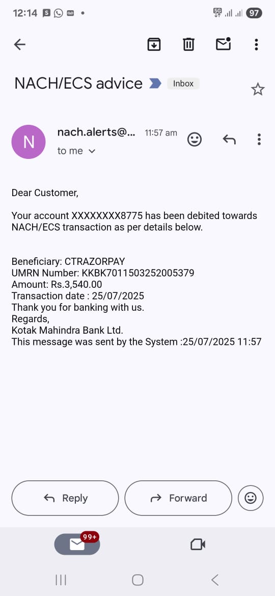 MY MONEY DEDUCTED FROM MY ACCOUNT RS.3540 ON 25/07/2025 AT 11:57 AM