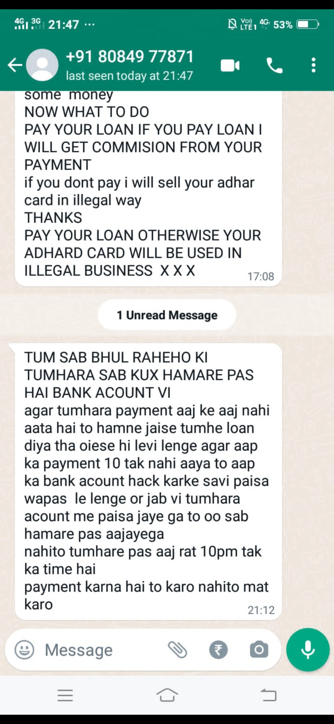 Sir I have taken loan of 3500/- from lucky buddies app. Even after full payment they called relative of me from different number and sending message to mis use aadhar card of me illegal way and will hack the account. They already hack all contact detail of me and sending nonsense message