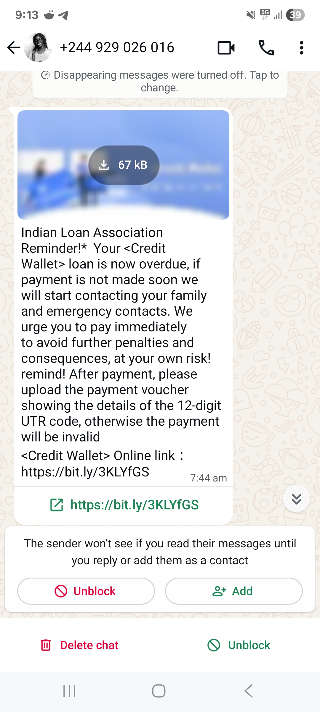 Sir I got WhatsApp massage from international number repay amout.. i dont know the “credit wallet” i check in Google not see when I paste there link its show repayment money ..i checkmate profile there no name no my personal details even there customer care WhatsApp number and gmail id is invalid