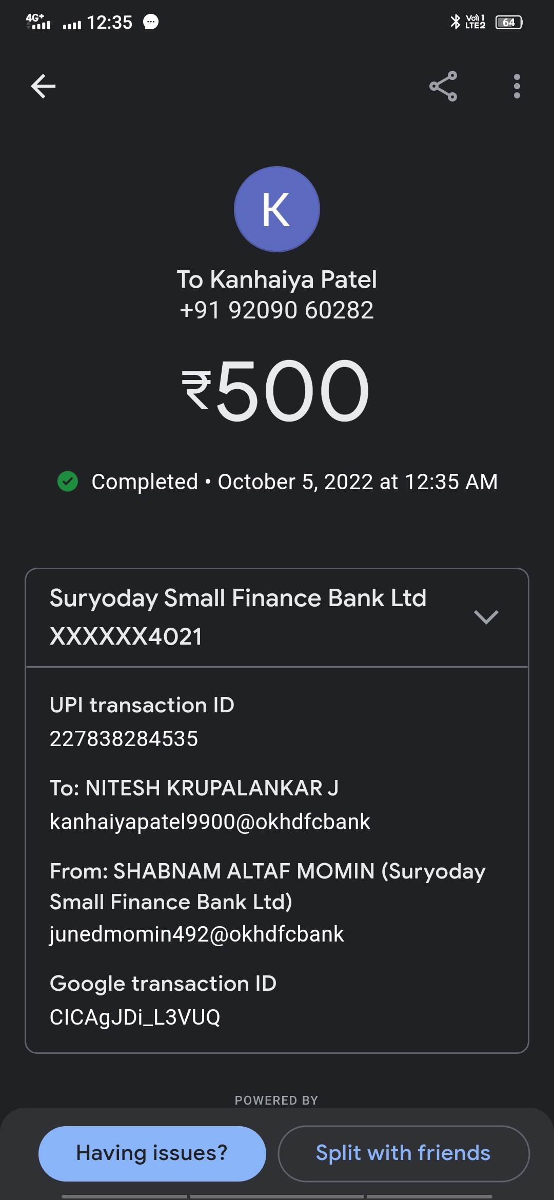 I have pay to number +91 93767 70277 rs 500 but hi is not added the money in my id and hi is not replying me aslo