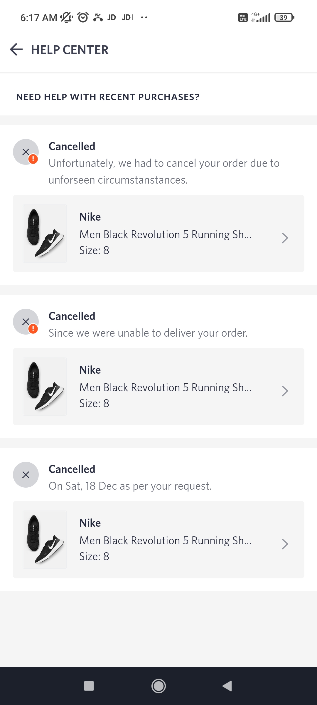 It’s been the second time when the product reaches at the nearest delivery center. Myntra itself cancelled the order.