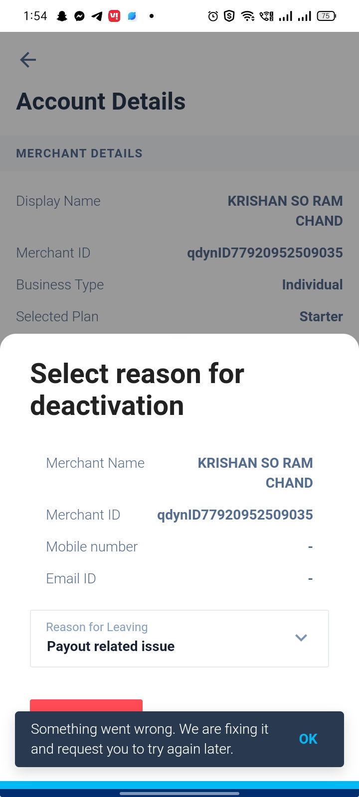 My Paytm account is made but now I am not using it, I am trying to deactivate that account, but again and again the same error show is happening. .The error is SOMETHING WENT WRONG WE ARE FIXING IT AND REQUEST YOU TO TRY AGAIN LATER.