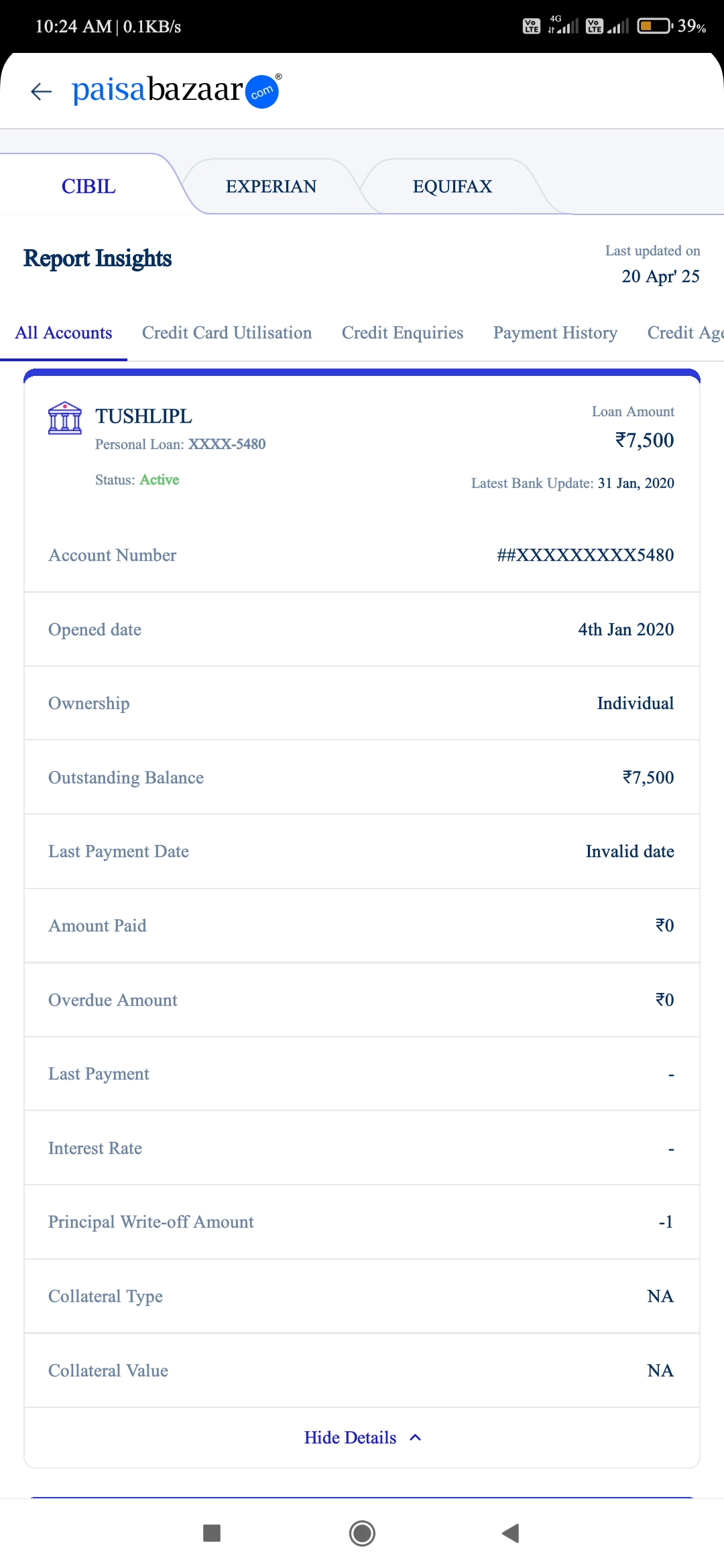 I want register complaint loan was taken in jan 2020 nd paid off also but from their side no update done in cibil …
