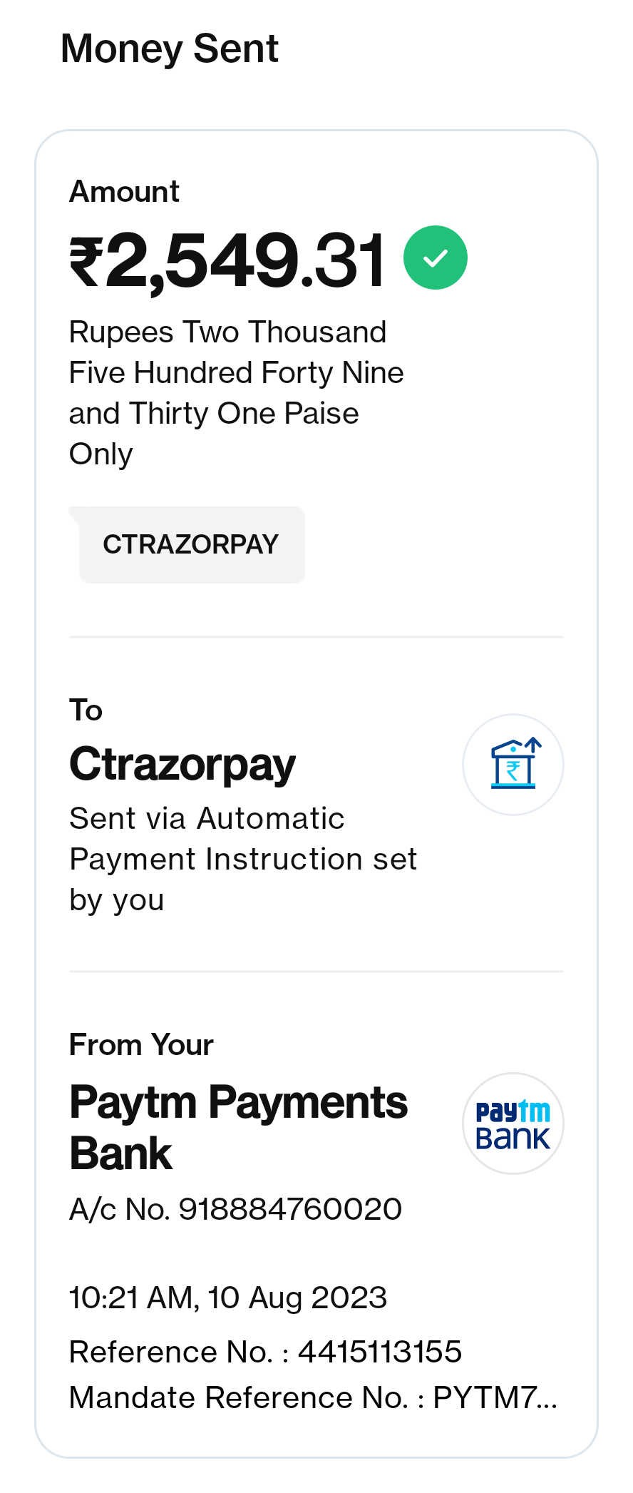 But they are debited 2549rs in my account