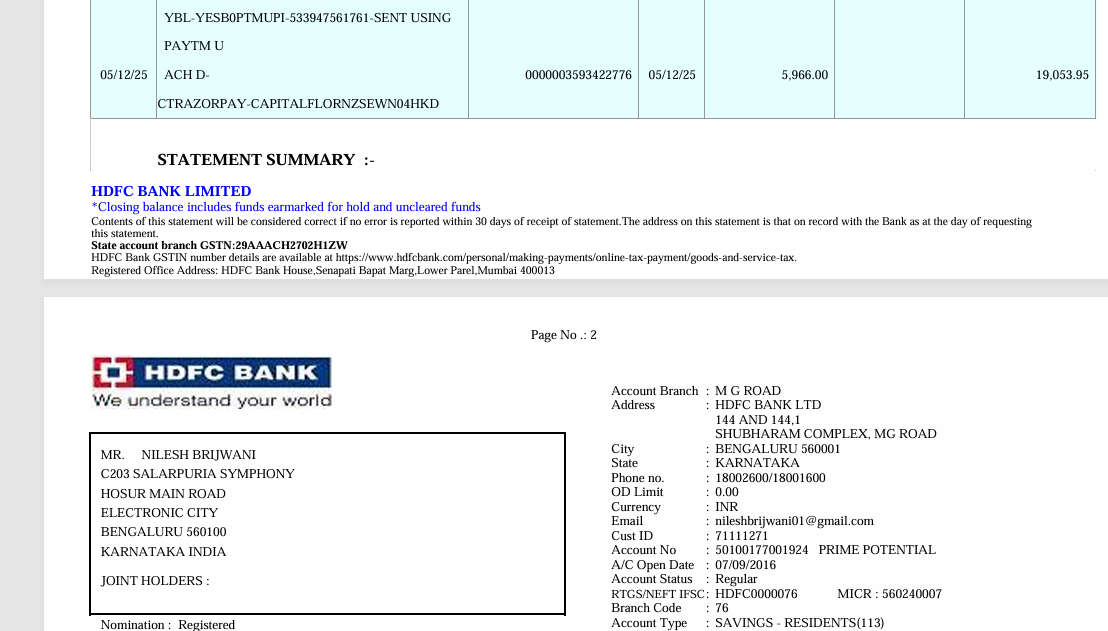 I received a debit today of ₹ 5,966 from my HDFC account from ACH D-CTRAZORPAY-CAPITAL and I don’t recall signing up for any such auto debit. Have reached out to the bank but no help.
