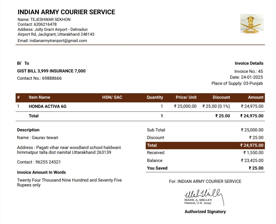6206216478 ms chauhan this guy call and ask me for 1500 courier charges . Then he again call I have to pay gst bill and insurance 3999 and 7000 . And send his identity while I check his details the number he was calling and the other number is same person. He took my 1500 what can I do please help