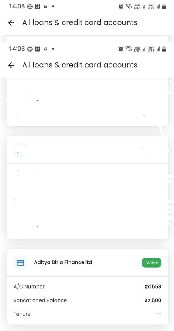 DEAR SIR/MADAM,I WOULD LIKE TO INFORM YOU THAT I CAME TO KNOW THROUGH BHARAT PAY APP. ALL LOAN & CREDIT CARD ACCOUNTS A LOAN FROM ADITYA BIRLA FINANCE LTD ,A/C NO.XX1558,SANCTIONED BALANCE Rs.2,500/- TENURE NIL IS SHOWN,WHEREAS I HAVE NOT APPLIED FOR SUCH ANY LOAN.THIS IS CREATING A LOT OF PROBLEM.I FEEL DISTURBED AND HARRASSED.PLEASE REMONE THIS FROM MY NAME,OTHER WISE I HAVE TO TAKE A LGAL ACTION.THANKIN YOU