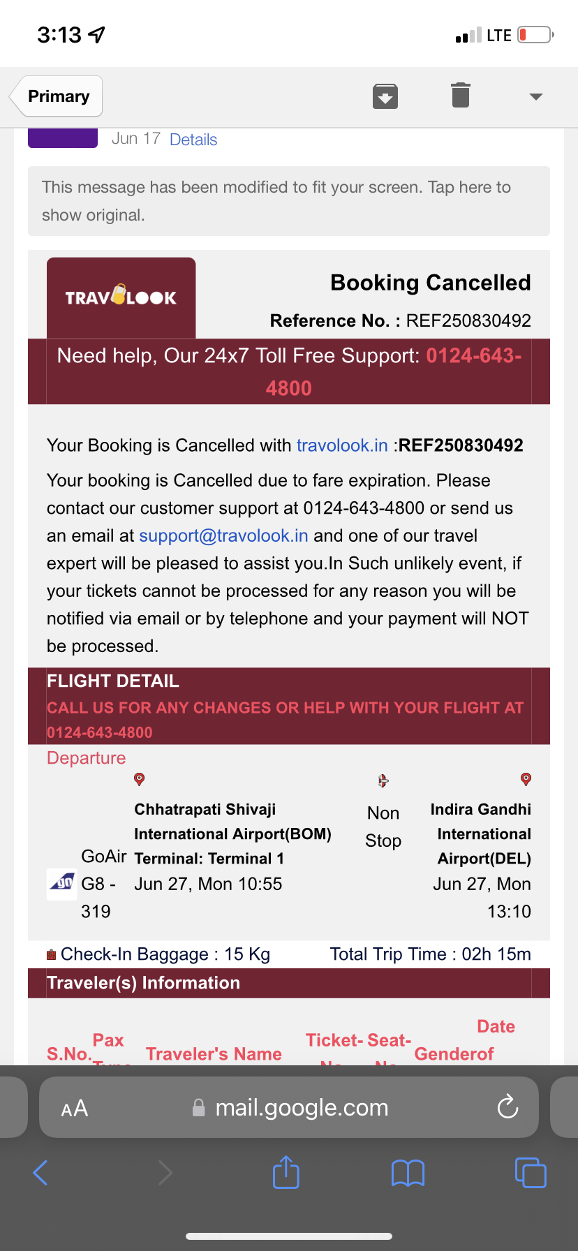 I had two tickets on 17 June worth rs 12456 rs and one on 13th July worth rs . 4458 rs and I received a mail that my tickets got cancelled due to technical errors and my amount is credited in 7-10 working days but after continuous follow up with mails and calls I haven’t received my money . It’s been a month now
