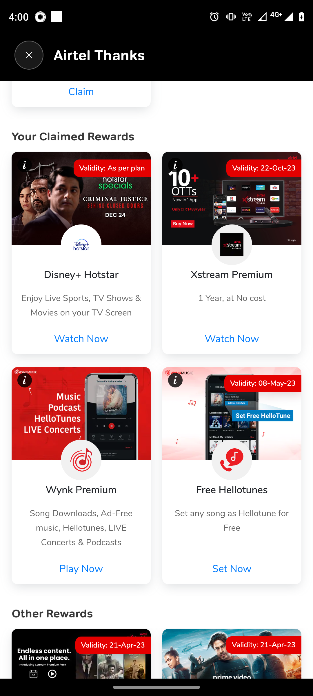 As per the attached image , in my claimed rewards Xstream OTT is available at no cost till 22 Oct ’23 but I am being charged ₹149 every month by Airtel. I reached customer care support also but no one is resolving the issue. After begging 100 times and explaining 100 times they update the bill by removing the ₹149 amount but again next month they charge me for it. I am also unable to use the service on my mobile. I want to be able to get the service for free as I am entitled to as per the plan and want refund on any amount being charged for it since Oct’22. Pls help