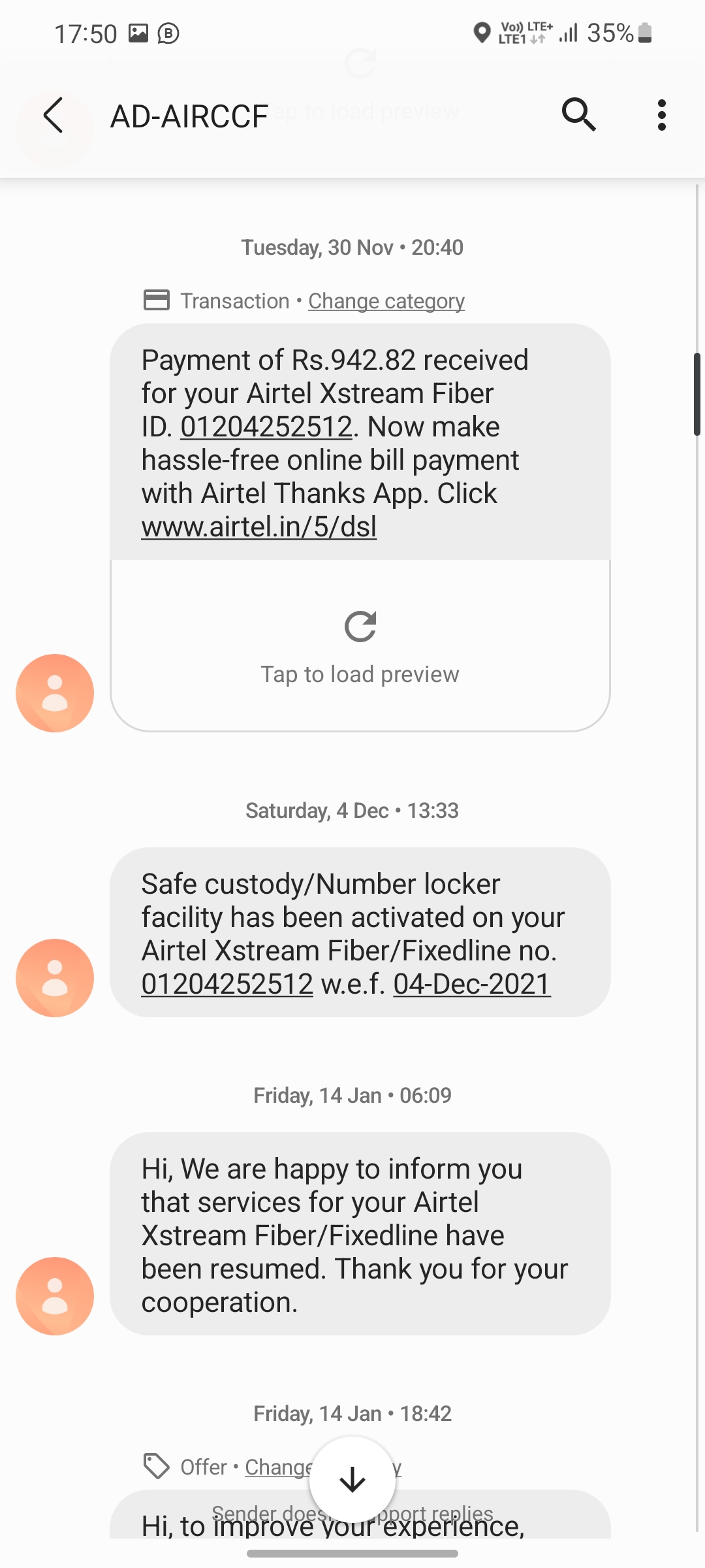 I requested the airtel broadband customer care in the month of Novemder 2021 for closing my internet connection as I was moving to another city. The customer are team asked me to clear the pending dues of 924 rs and I paid the same amount before they can proceed further on my closure request. They kept calling me and kept asking me the reason for closure through many calls and I told them that I am moving. They still did not close my connection and keep sending me the bills even though I am not consuming their service. It’s literally a torture for me to keep answering their calls and they do not provide closure Also for last 2 months they are generating bills and calling me to make the payments. I am helpless on this matter as I feel they are putting bills on my account for no reason and providing no resolution. I am attaching the Text messages from Airtel which has payment details I have made to clear the dues. After making the payment they did put my account on lock abd then resumed the service again without any consent from my side and now they are asking for bills.