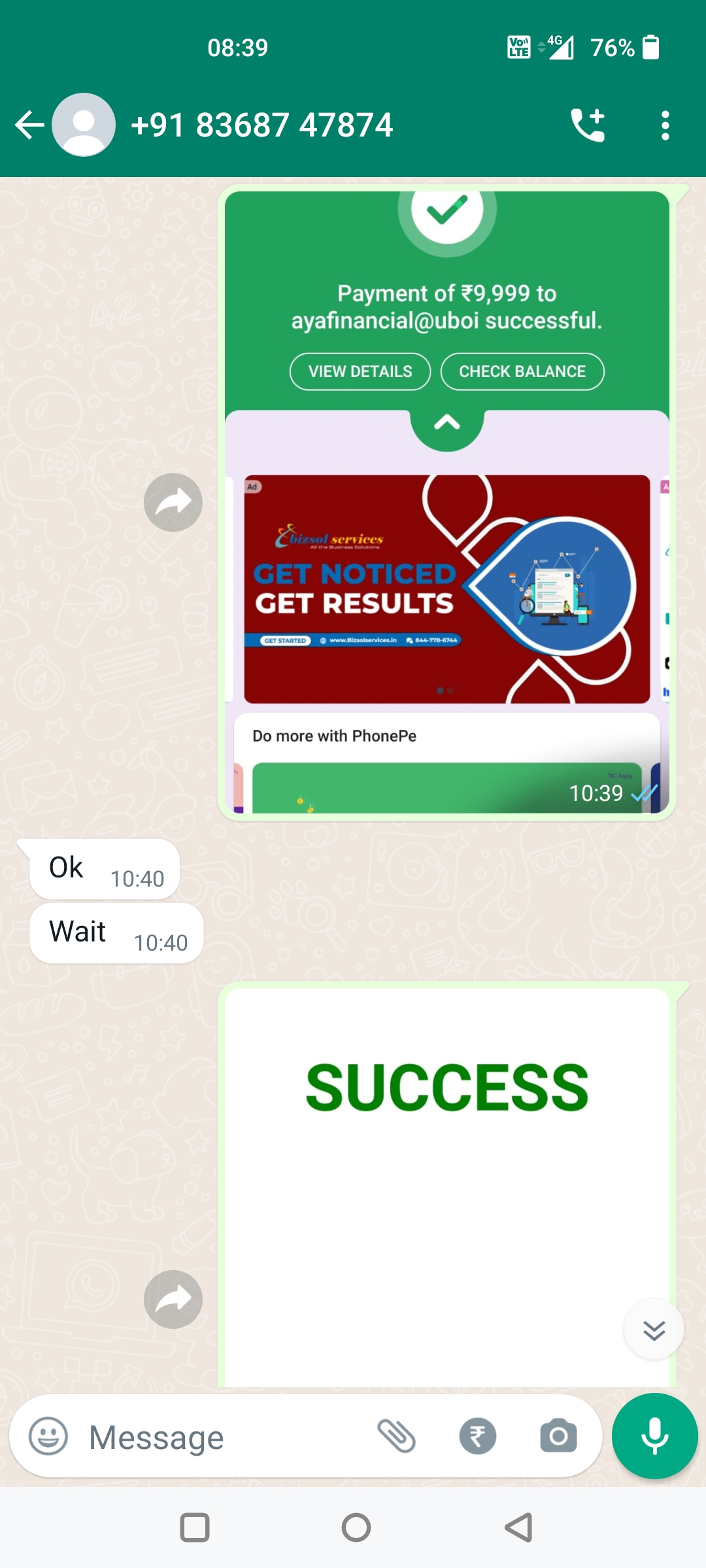 Myself vivek mamdy took a loan from Rupee box in that Blue money..I took loan on 19th may and the repayment date is on 25th..which I cleared the amount is 9999 and again today they are sending msgs that you didn’t cleared your loan pay immediately or else we will send msgs to all ur contact list numbers..even though I sent all details like transaction I’d,UTR no and the conversation happened with their executive on WhatsApp everything I shared but still they are not ready to accept..iam small person in some emergency I took now again from where I should bring 9999..I beg please help to solve my issue on priority..