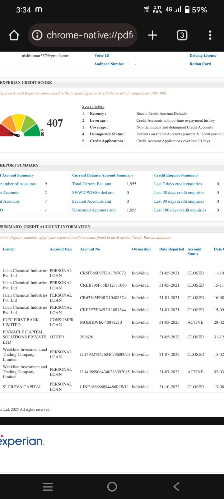 | Name(s) of companies complained against | Cibil, Weekline investment and trading company |