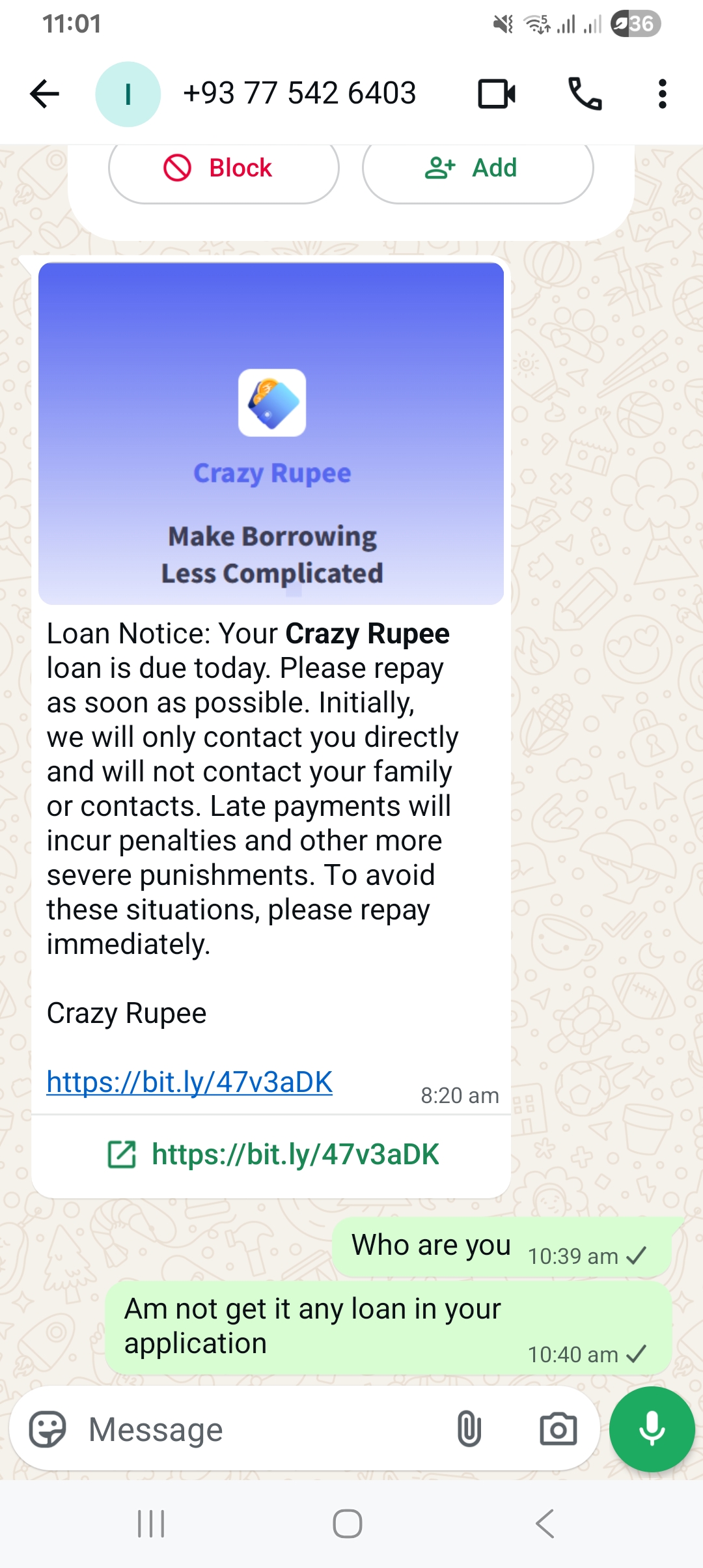 Am not take any loan from crazy rupee but tha person told pay immediately others wise your nude photos and my person information share my contact person kindly help Am from Bangalore
