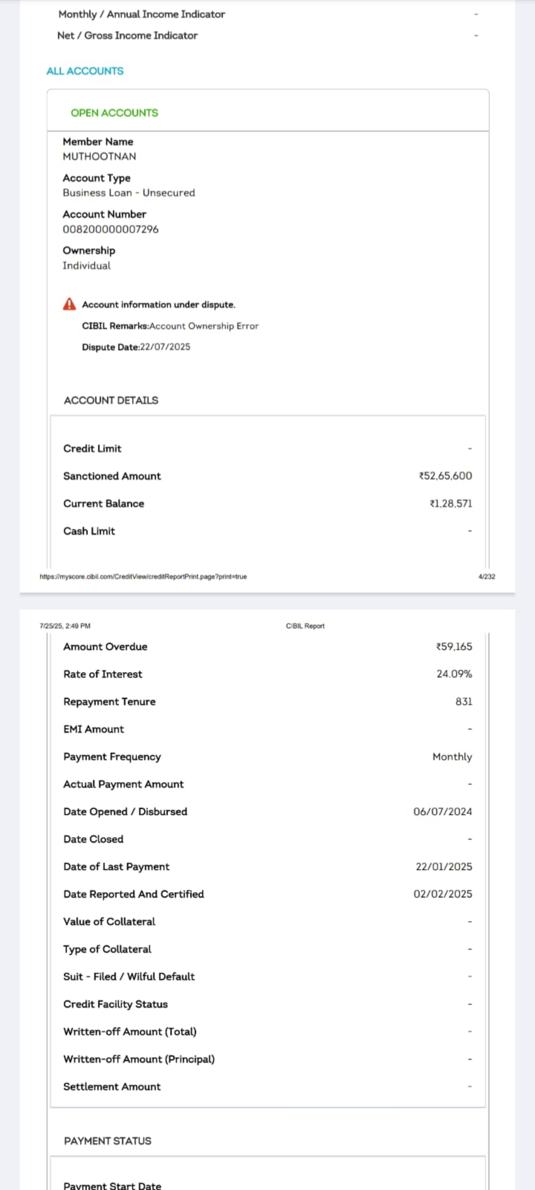 Am not taken any type of the loan in Muthoot nan but my cibill report showing 52,65,200 many times complaint to cibill and Muthoot groups