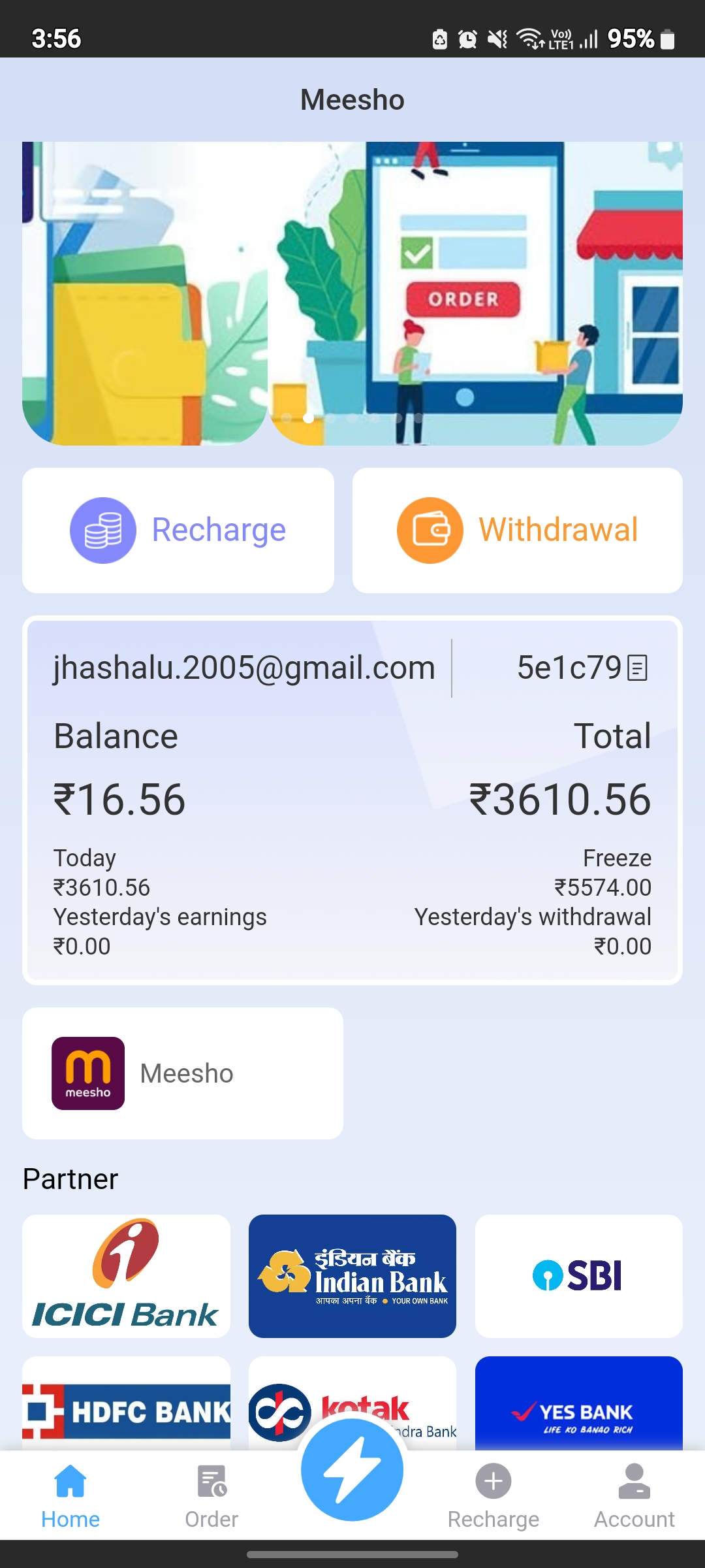 In the pretext of part time job . Now they have frozen the transaction so I can’t withdraw my money and now telling me to deposit 5000 more to get my money back or they will seize my rs 3610