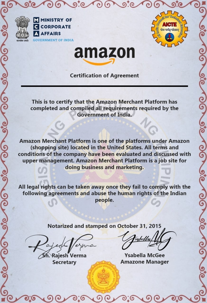 1. I too have came across the Instagram advertisement for work from home from Amazon First they asked to create a profile and then to deposit money. When I asked about the authentication, they shared this certificate. The whatsapp number was : 9576782270