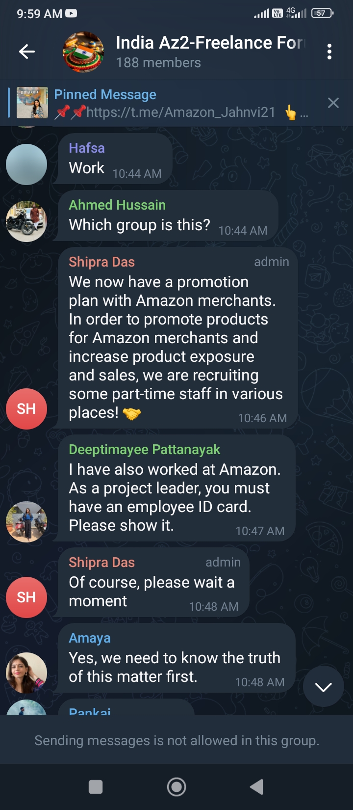 Amazon part-time job message came in telegram group. I participate that job she says total 24tasks completed per day. I paid 400k for task 12. After payment she blocked my id. And I lost my 400k amount