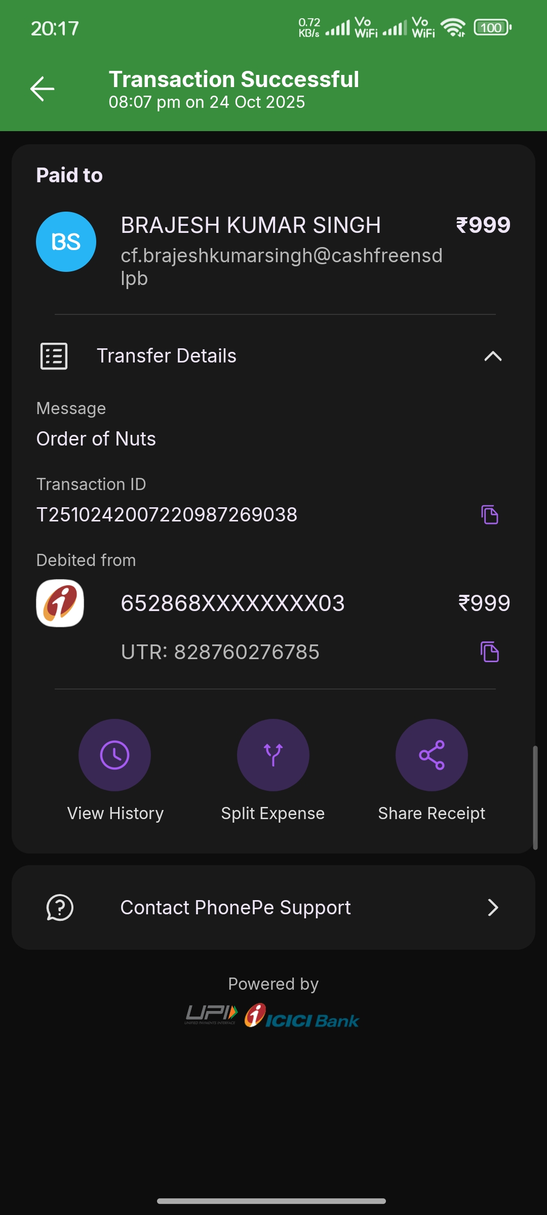 and made a payment of ₹999. The amount was successfully deducted from my account, but I did not receive any order ID, confirmation email, or message from the company.