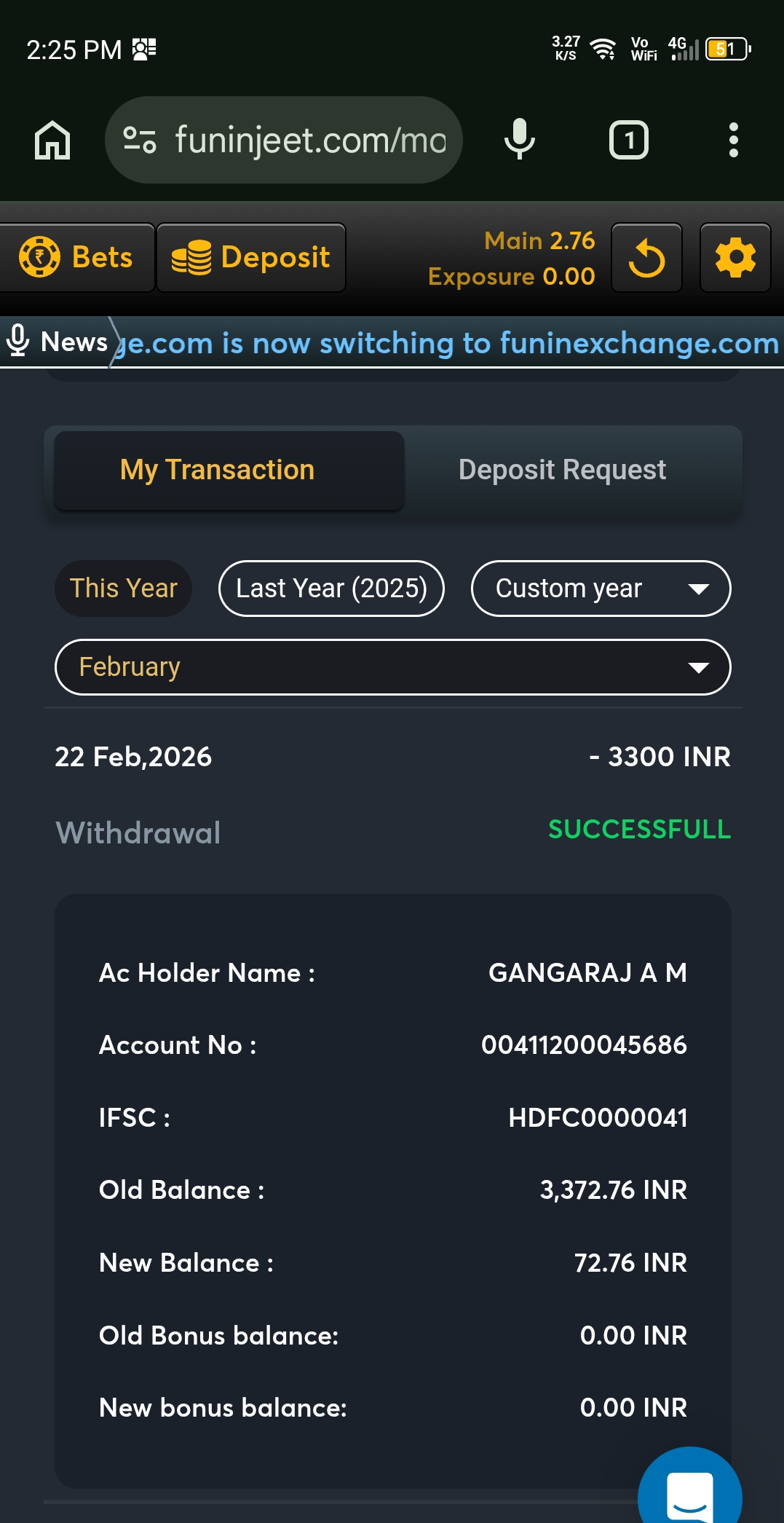 Amount not getting credited to my bank account since 6 days