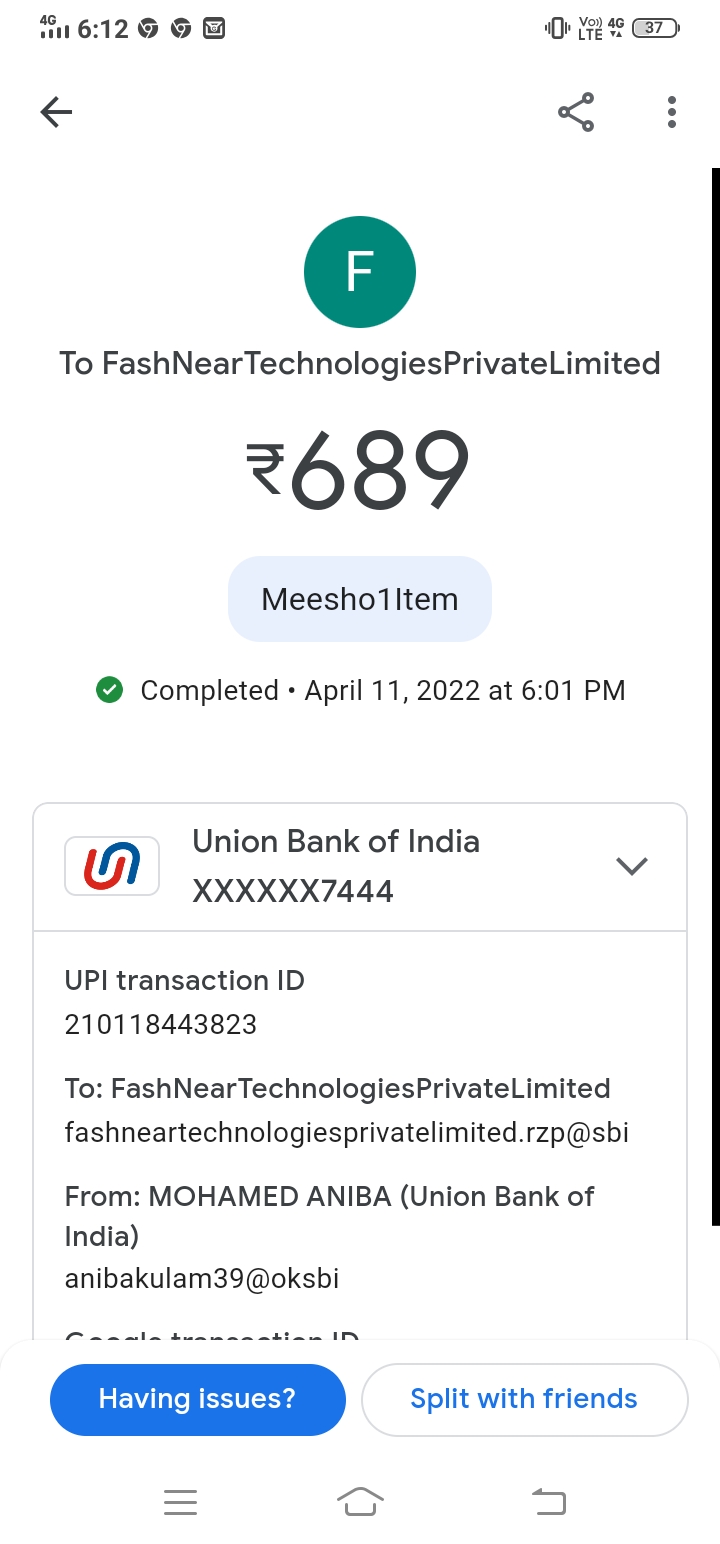 I send 689 for one saree booking ….but amount is debited from my account but saree booking is not available in my meesho account.