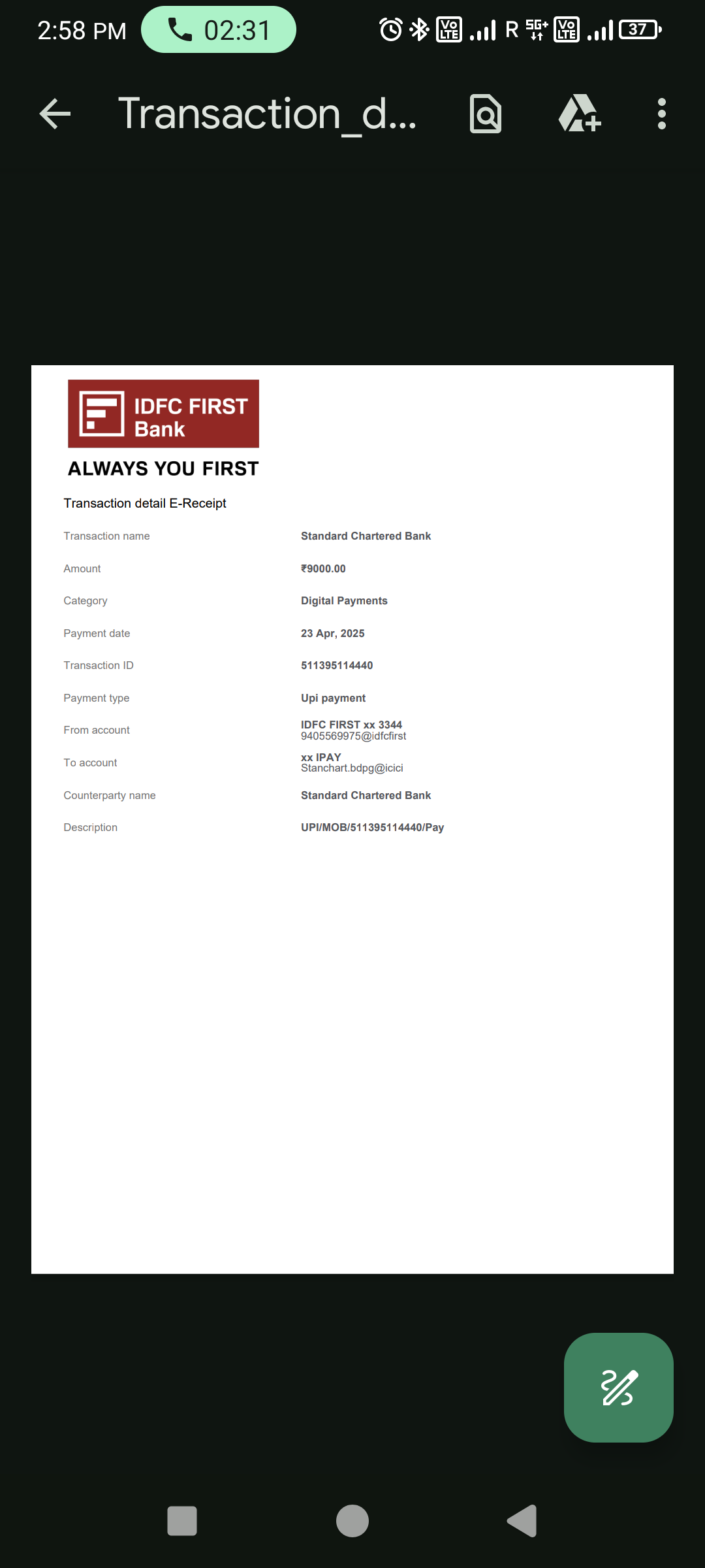 Payment transfer to account number id given below.0103SL00IPAY. and stanchart.bdpg@icici