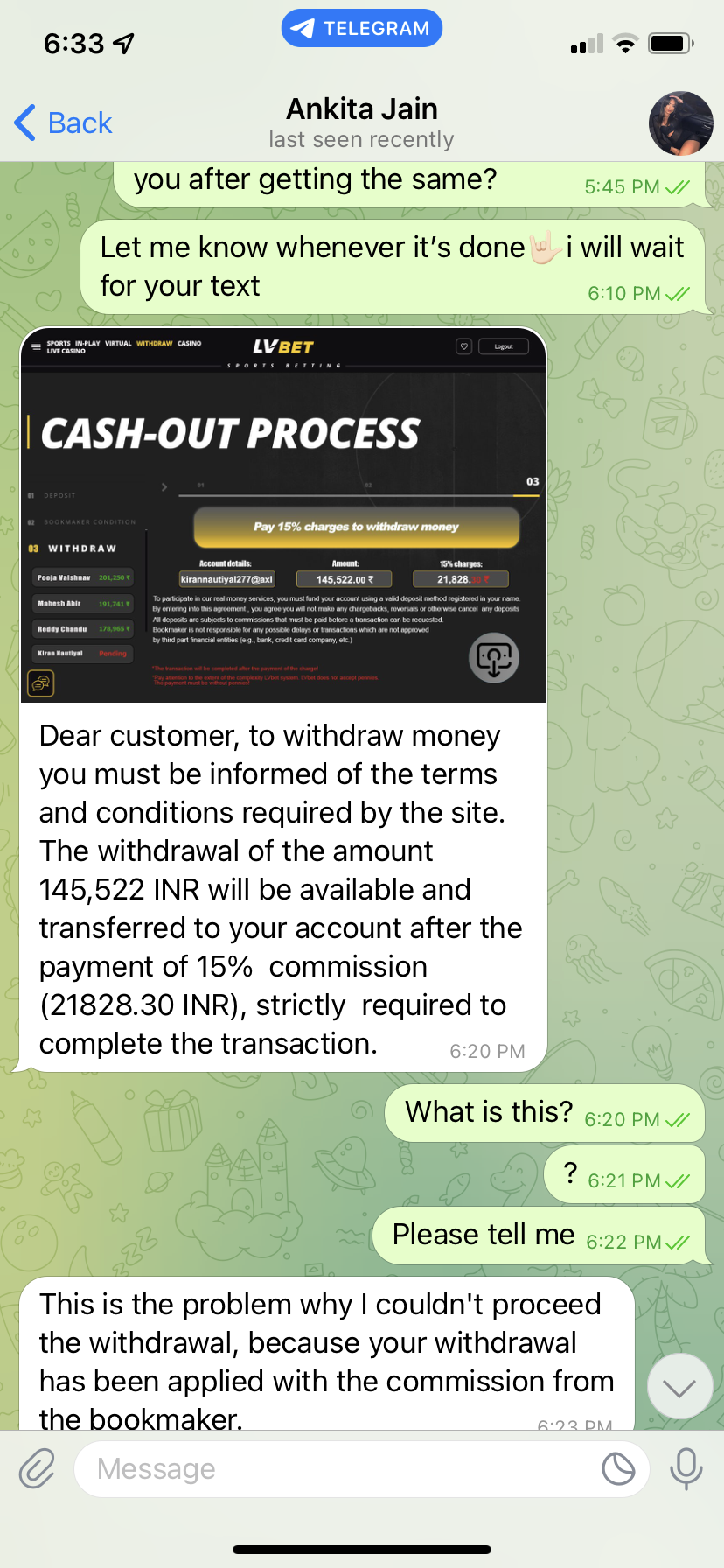 She asked me to invest 10k and said i will make 1lac for this but she was a liar. Please be aware of those frauds guys. She will tell you that its processing and all and after that she will ask you more money for that. Please don’t go in her trap.