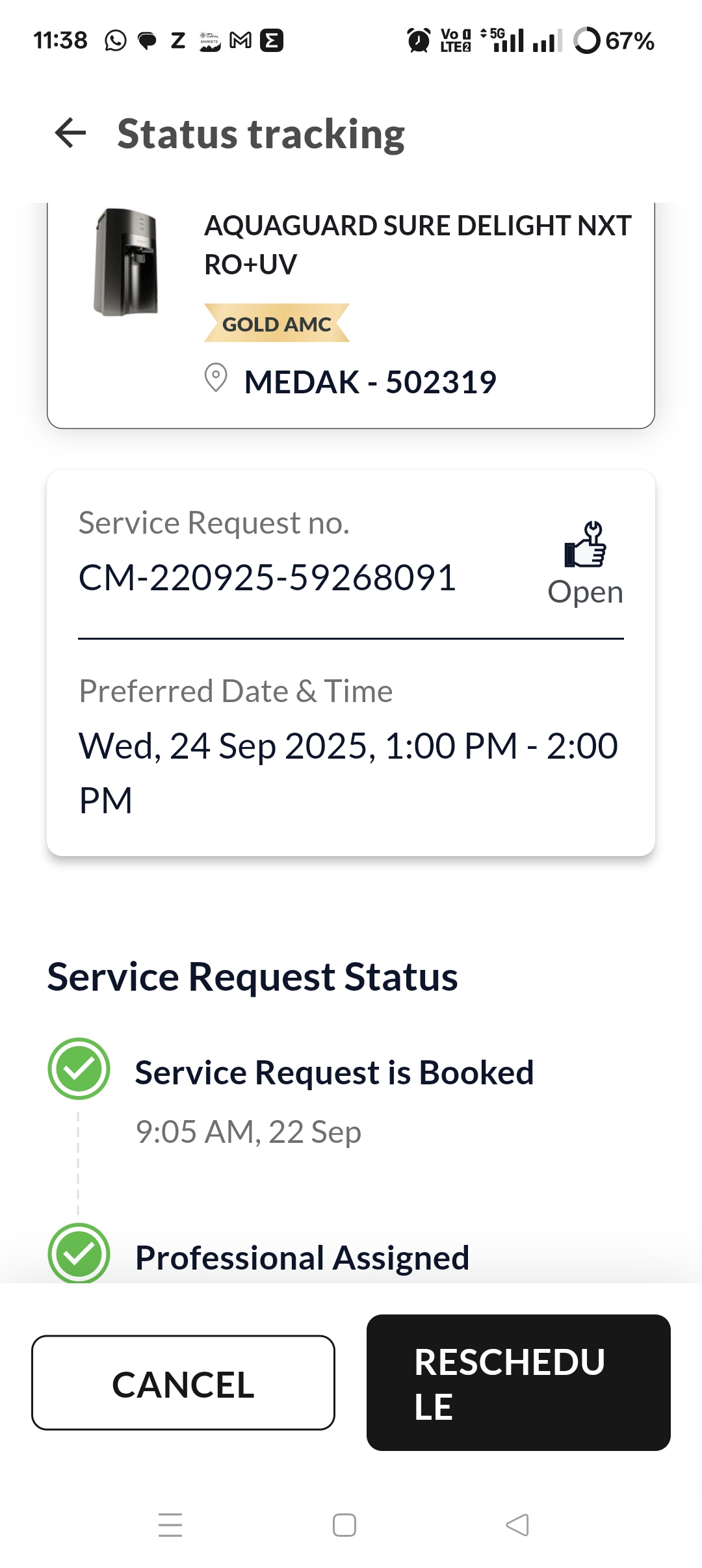 We have purchased the Aqua Guard Water purifier last year and paid AMC on 21st after calling customer care. After that they stopped responding and our service request has been on hold for more than 2 weeks without any response.