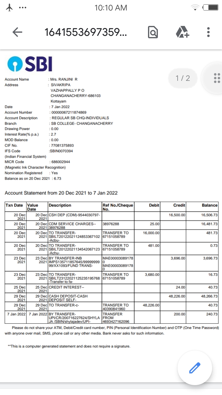 My account cash no credit ,repay date, 07/02/20222, harassing l .,asan loan cheeting, my bank account no credit bank statement attached, my name Ranjini R