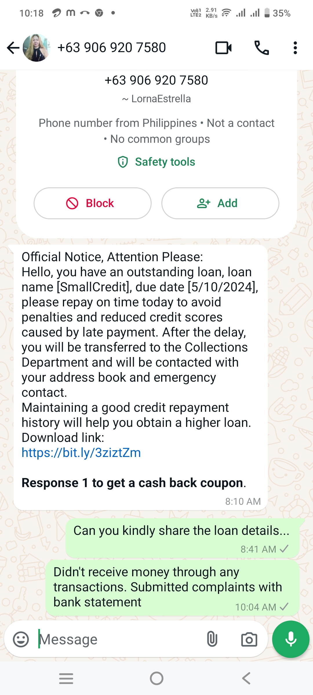 We didn’t receive any amount from small credit on 29.09.24 .. but they asked to repay today 05.10.24