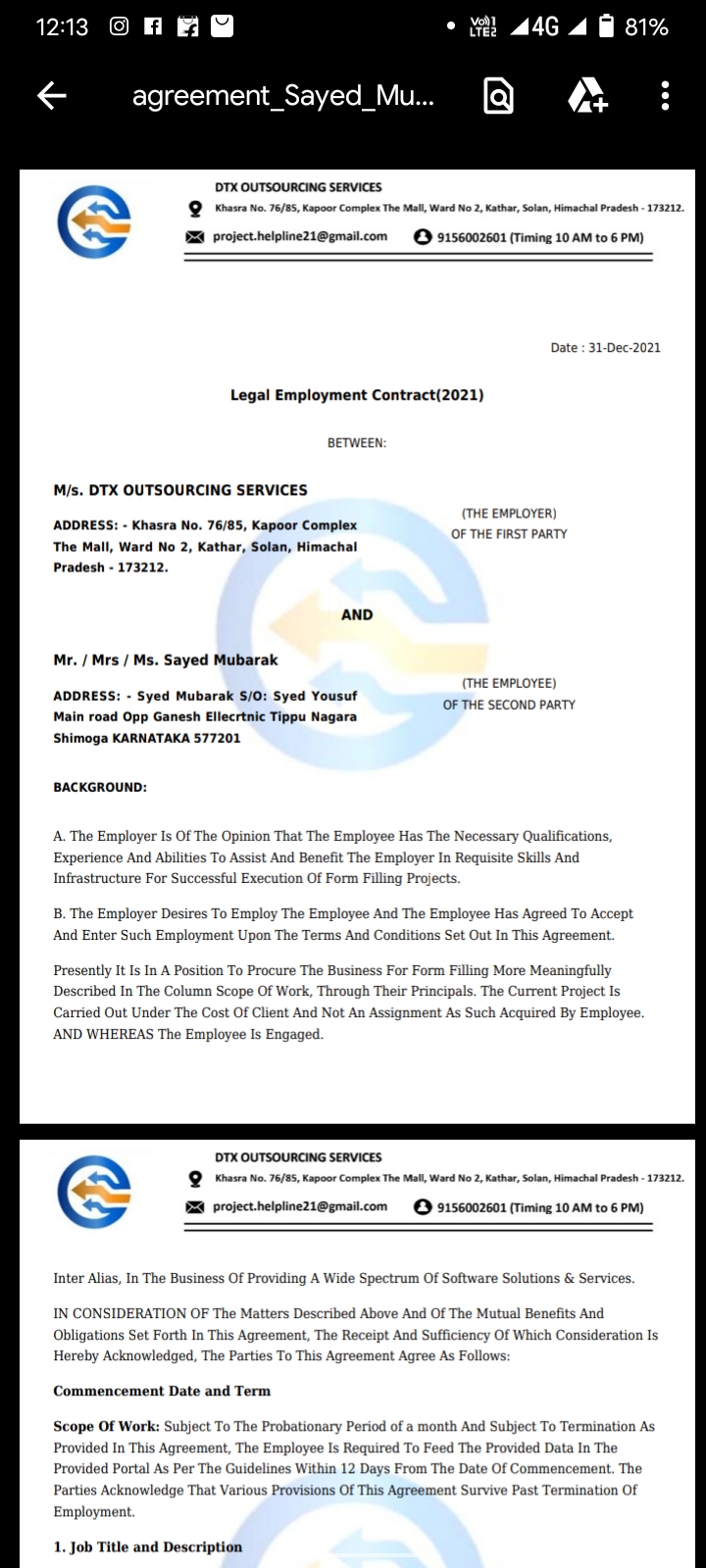 | Name(s) of companies complained against | DTX outsourcing services |