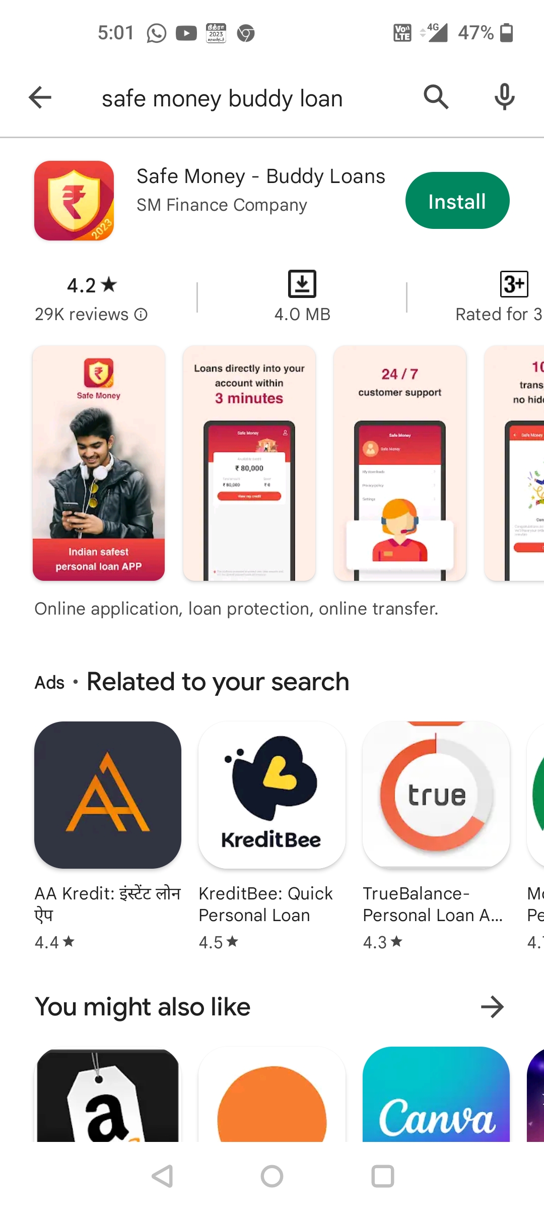 | Name(s) of companies complained against | Safe money buddy loan app |