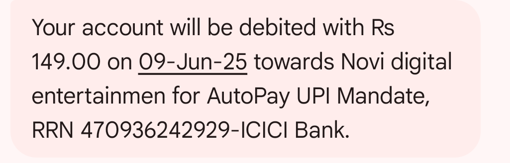 From Novi digital entertainment auto debit of Rs 149 Received.. Pl cancel subscription and auto debit..
