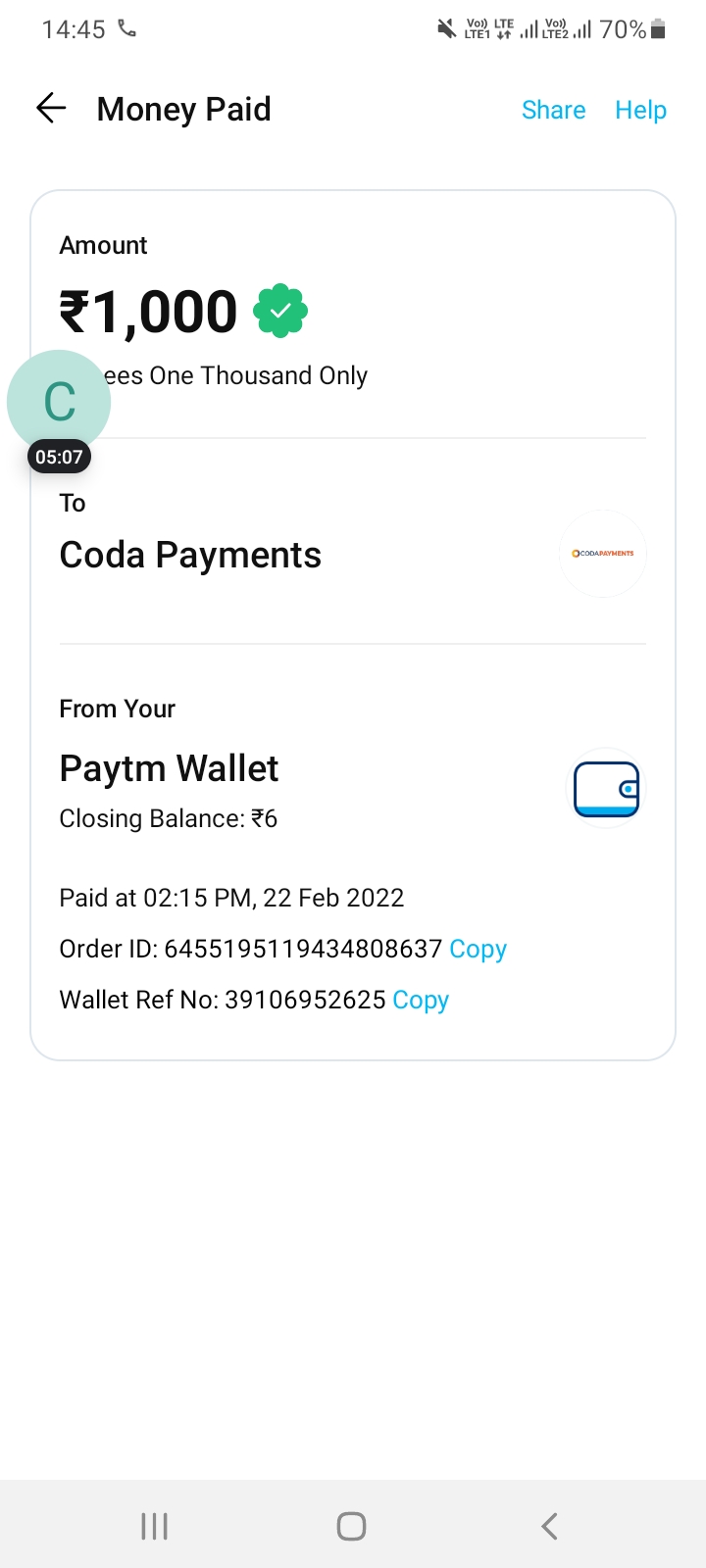 1000 Bina kise Jankari ke mere pytm wolet se Kat liye gye