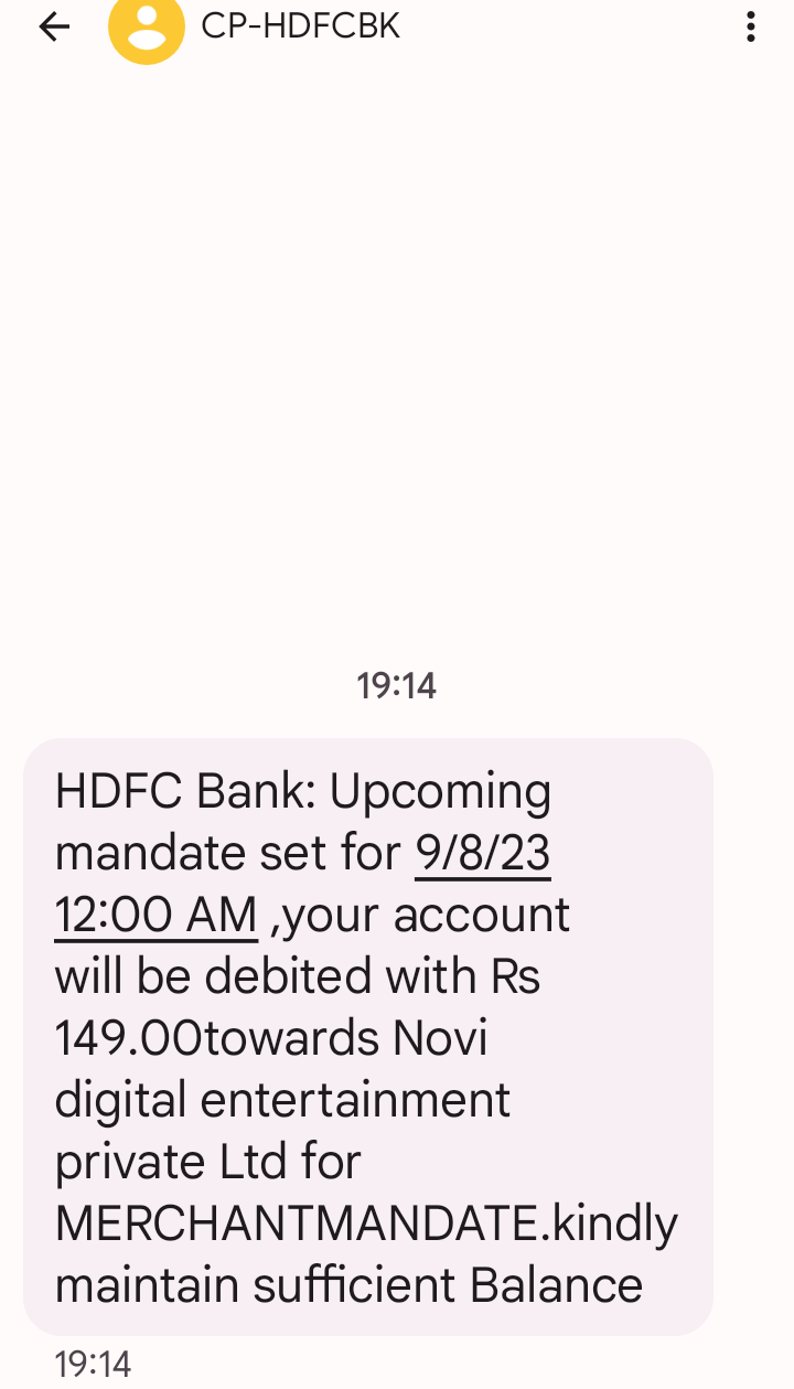 account will be debited with Rs 149.00towards Novi digital entertainment private Ltd for MERCHANTMANDATE