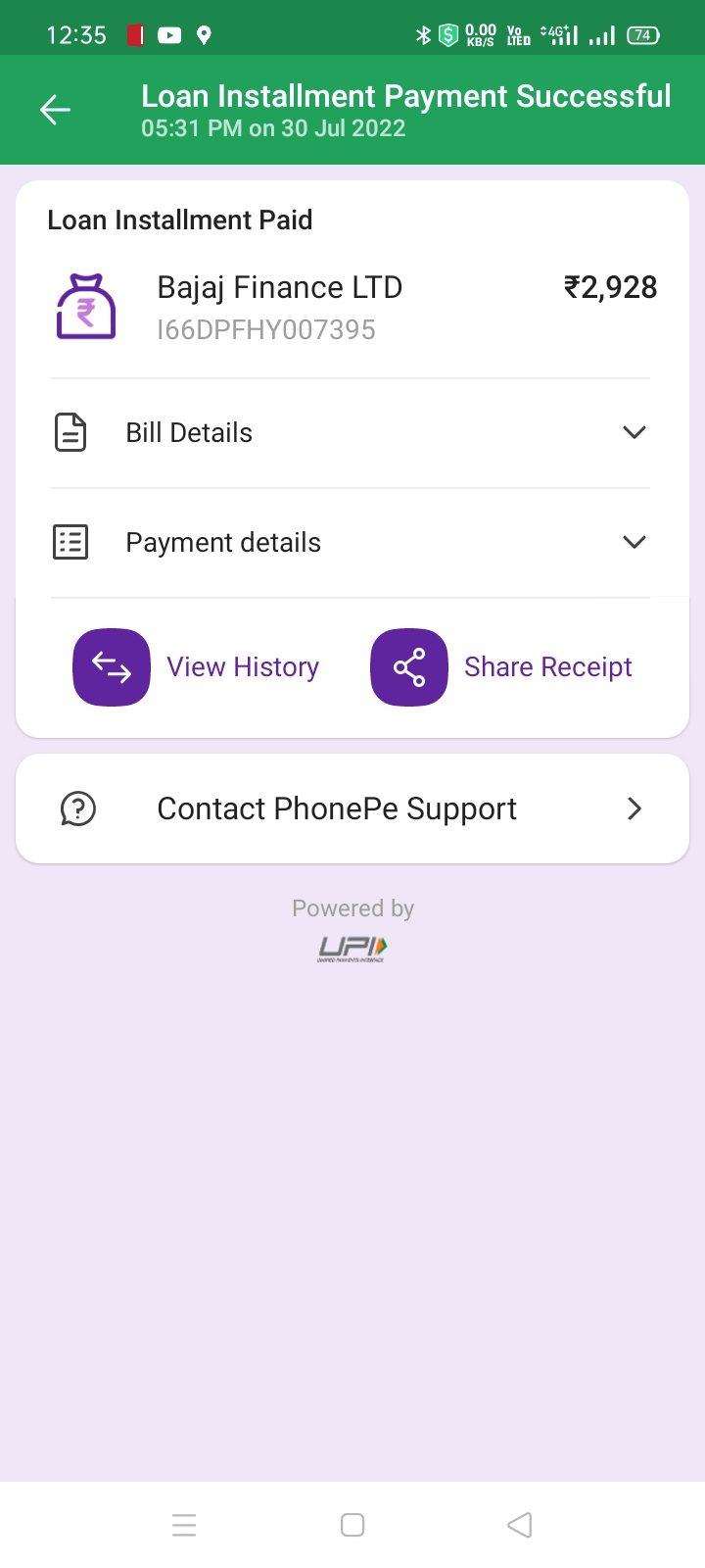 On regarding of a loan if Bajaj Finserv every month i have been called my bajaj staff and have to told to pay online due to bank not responding the payment. I made payment on 30 july by phonepay on company call while ever on 1 july the bank made my account hit on bajaj company payment slip .when i have paid the emi then how company can say bank to pay. I have been fined 590 Rupees
