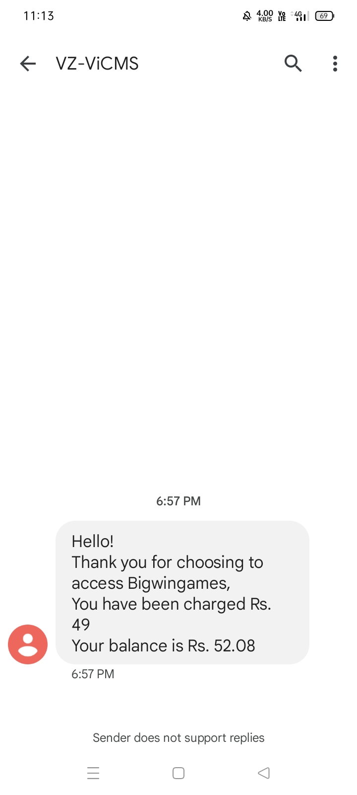 Rs. 49/- has been deducted today i.e, 25.11.21 from my mobile balance without my permission for the access of Bigwingames.